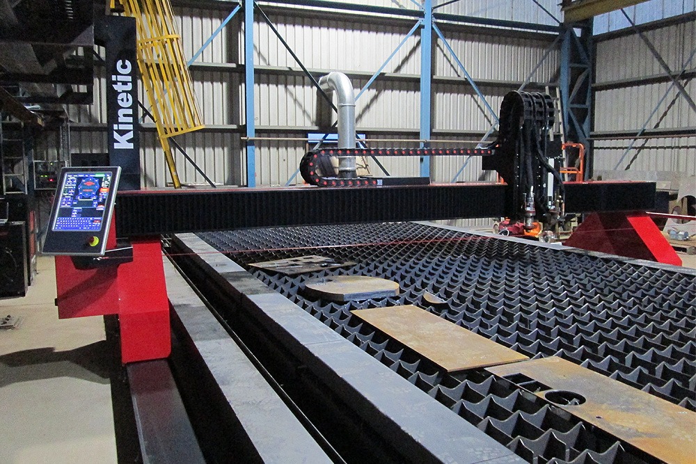 The K2500 is our top-of-the-line production cutting machine, and is capable of plasma cutting, oxy-fuel cutting, bevel cutting and multi-torch cutting.